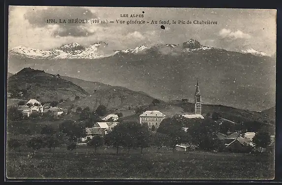 AK La Bréole, Les Alpes, Vue générale, Au fond, le Pic de Chabrières