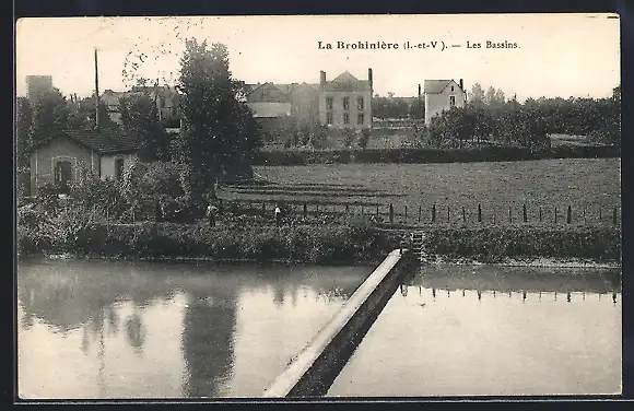 AK La Brohinière, Les Bassins et vue sur les bâtiments environnants