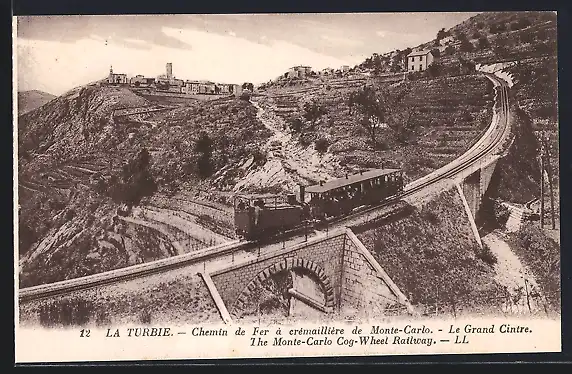 AK La Turbie, Chemin de Fer à crémaillère de Monte-Carlo, Le Grand Cintre, Bergbahn