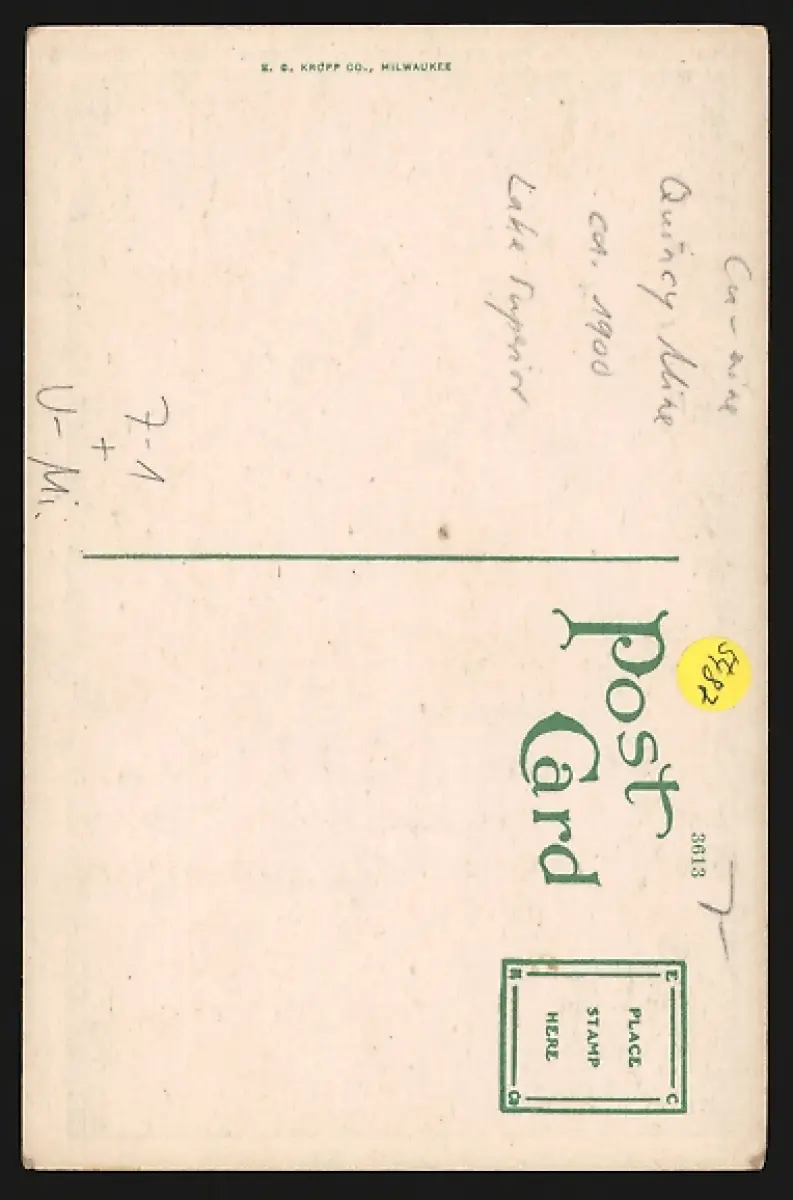 Personenbezogene Daten auf der Rückseite der Karte wurden durch blauen Textmarker unkenntlich gemacht. Die blauen Stellen sind auf die Vorderseite durchgeweicht und wirken sich negativ auf das Postkartenfoto aus