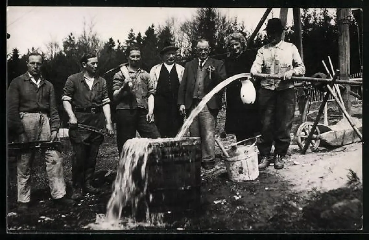AK Lambach /O.-Ö., Brunnenbau Franz Schierl, Männer bei der Arbeit
