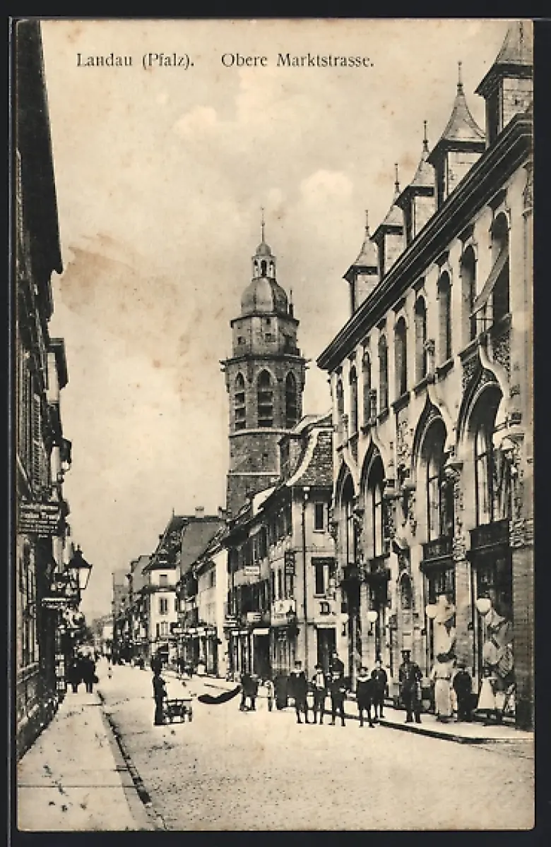 AK Landau /Pfalz, Obere Markstrasse mit Geschäften