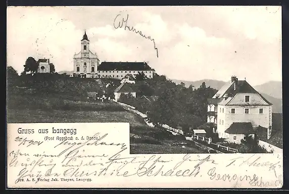 AK Langegg /Aggsbach a. Donau, Panorama mit Kirche