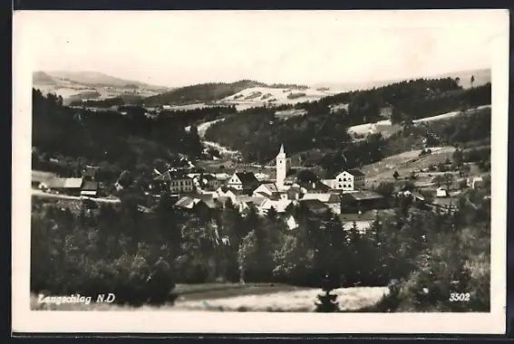 AK Langschlag /N. D., Totalansicht mit Fernblick aus der Vogelschau