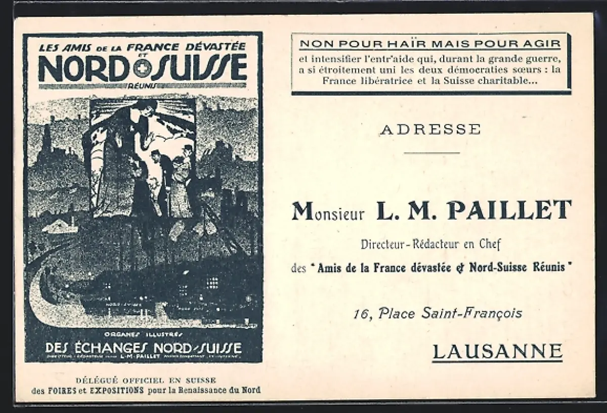 AK Lausanne, Amis de la France dévastée et Nord-Suisse Réunis, Illustrierte, Bestellkarte