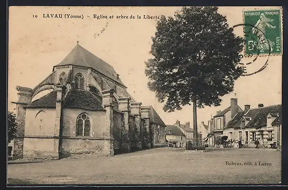 AK Lavau /Yonne, Église et arbre de la Liberté