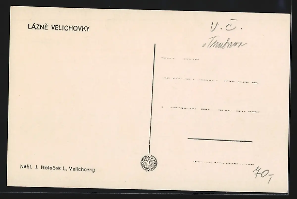 AK Lazne Velichovky, Strassenpartie mit Villen und Passanten aus der Vogelschau