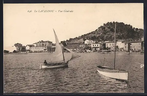 AK Le Lavandou, Vue générale avec voiliers et collines en arrière-plan