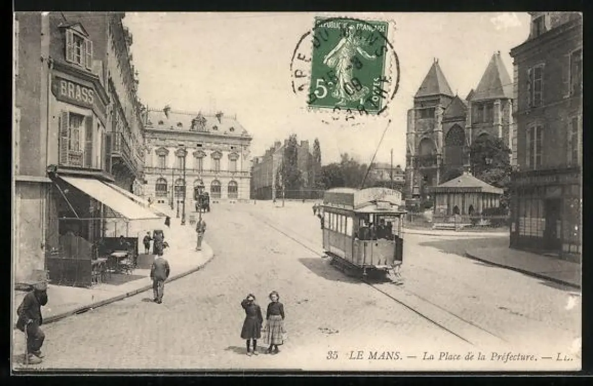 AK Le Mans, La Place de la Préfecture, Strassenbahn