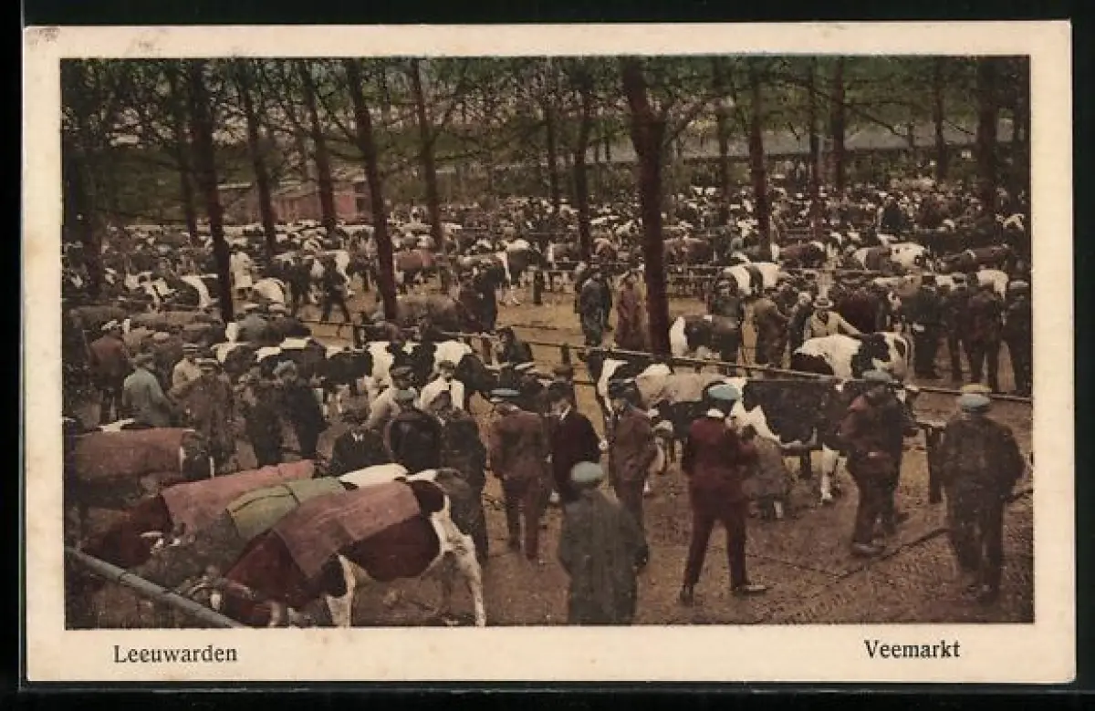 AK Leeuwarden, Veemarkt, Bauern beschauen sich die Rinder, Marktszene