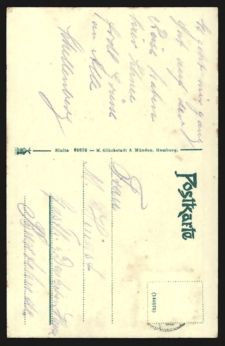 alte Ansichtskarte, gelaufen, Briefmarke entfernt, rückseitig Oberflächenschaden, guter Zustand