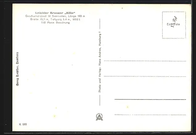 AK Leichter Kreuzer Köln der Kriegsmarine