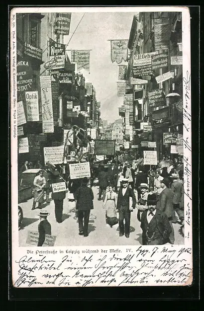 AK Leipzig, Die Petersstrasse während der Messe, Leipziger Messe