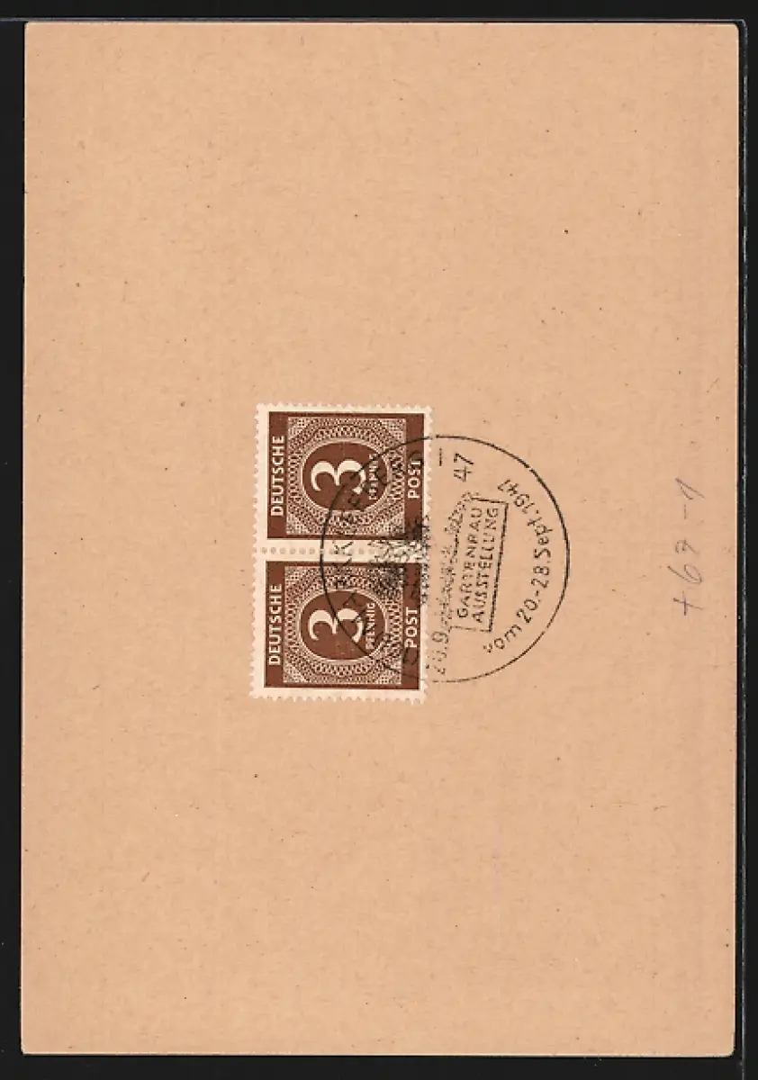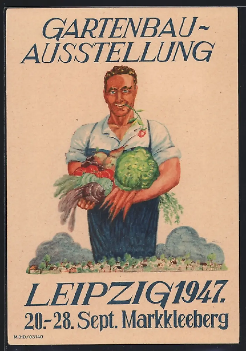 AK Leipzig, Gartenbau-Ausstellung 1947, Mann mit Gemüse