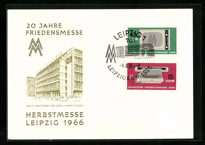 AK Leipzig, Herbst Messe 1966, Neue Hauptpost am Karl-Marx-Platz