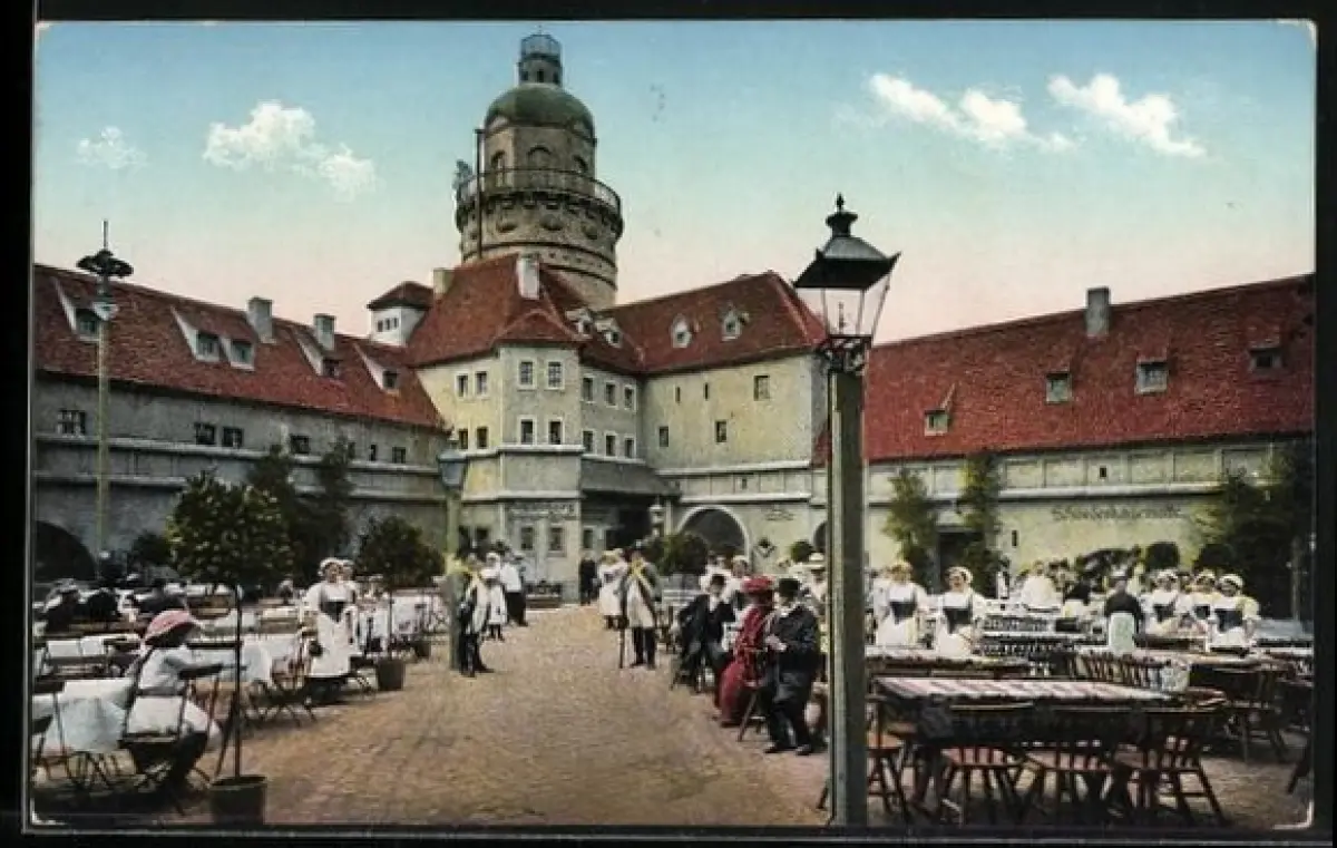 AK Leipzig, Intern. Baufach-Ausstellung 1913, Hof der Pleissenburg, Leipzig um 1800