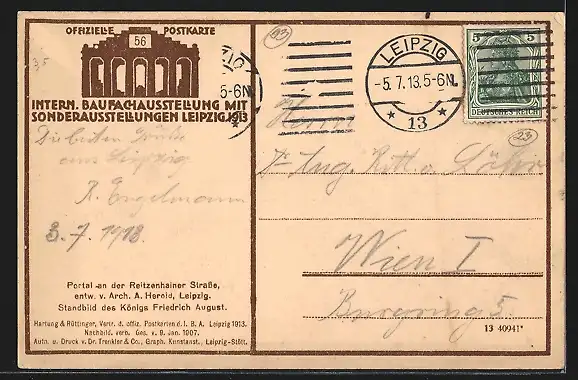 AK Leipzig, Intern. Baufach-Ausstellung 1913, Portal an der Reitzenhainer Strasse