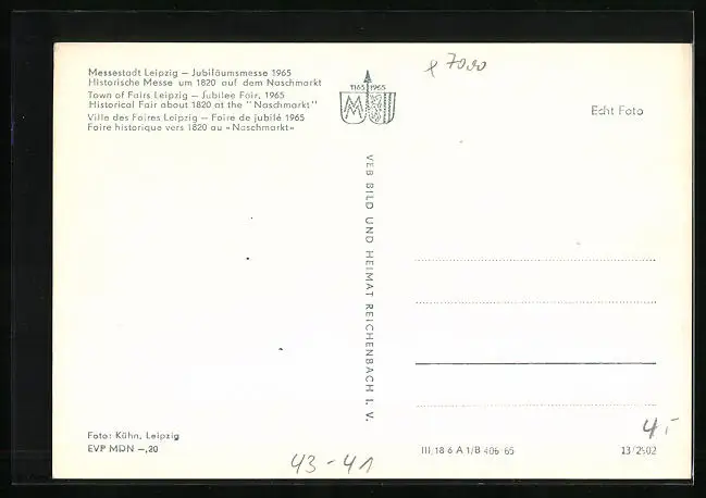 AK Leipzig, Jubiläumsmesse 1965, Hist. Messe um 1820 auf dem Naschmarkt