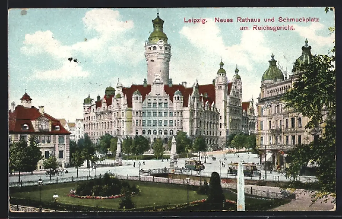 AK Leipzig, Neues Rathaus, Strassenbahn