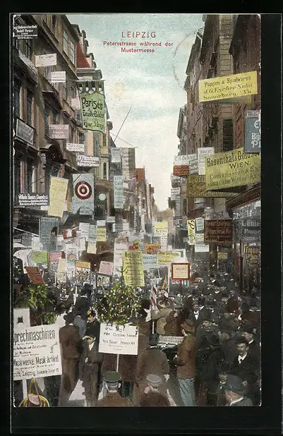 AK Leipzig, Petersstrasse während der Mustermesse