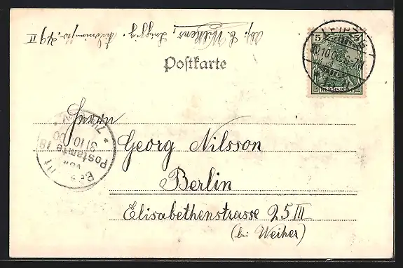 alte Ansichtskarte, gelaufen 1900, guter Zustand