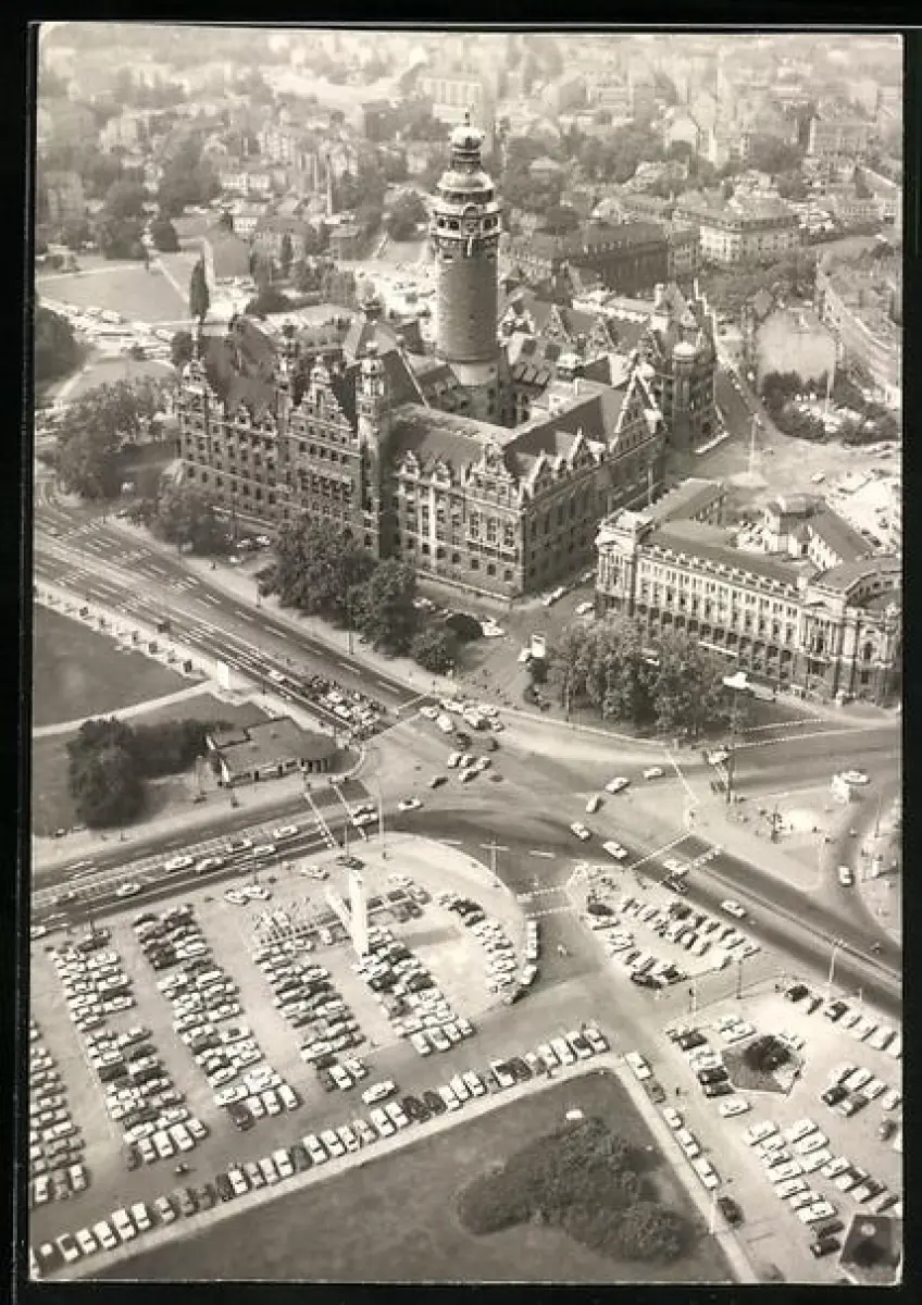 AK Leipzig, Strassenansicht mit grosser Kreuzung aus der Luft