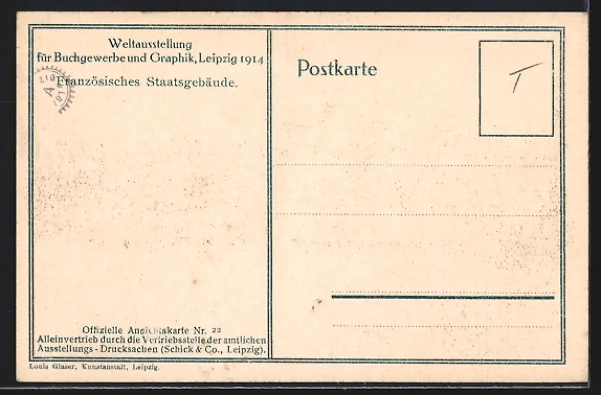 AK Leipzig, Weltausstellung und Graphik 1914, Französisches Staatsgebäude