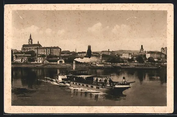 AK Leitmeritz / Litomerice, Ausflugsdampfer und Blick auf die Stadt