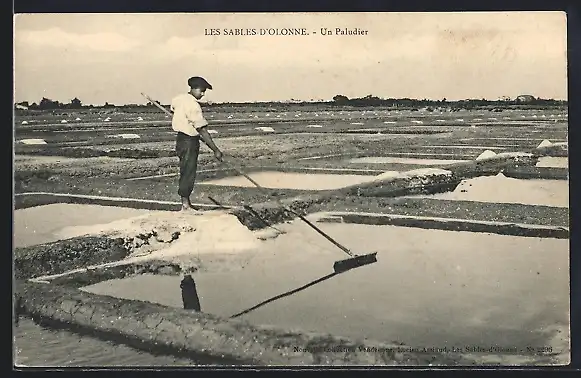 AK Les Sables-D`Olonne, Un Paludier, Salzarbeiter bei der Arbeit