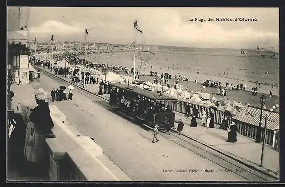 AK Les Sables-d`Olonne, La Plage, Strassenbahn
