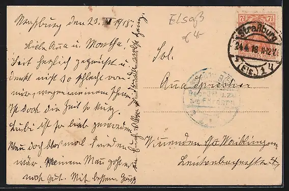 alte Ansichtskarte, gelaufen 1918, Stempelspur, guter Zustand