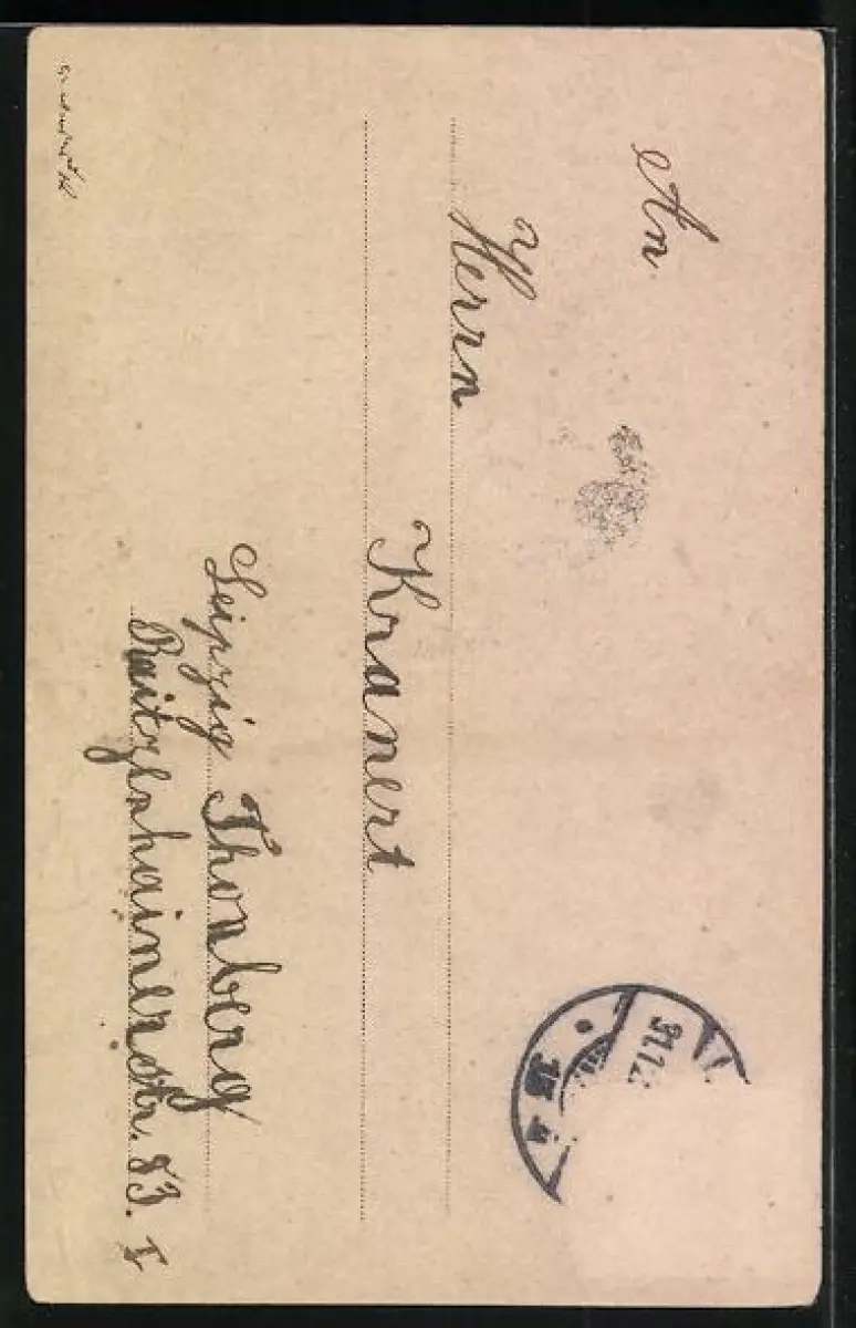 alte Ansichtskarte, gelaufen, Briefmarke entfernt, Eckknicke li., guter Zustand