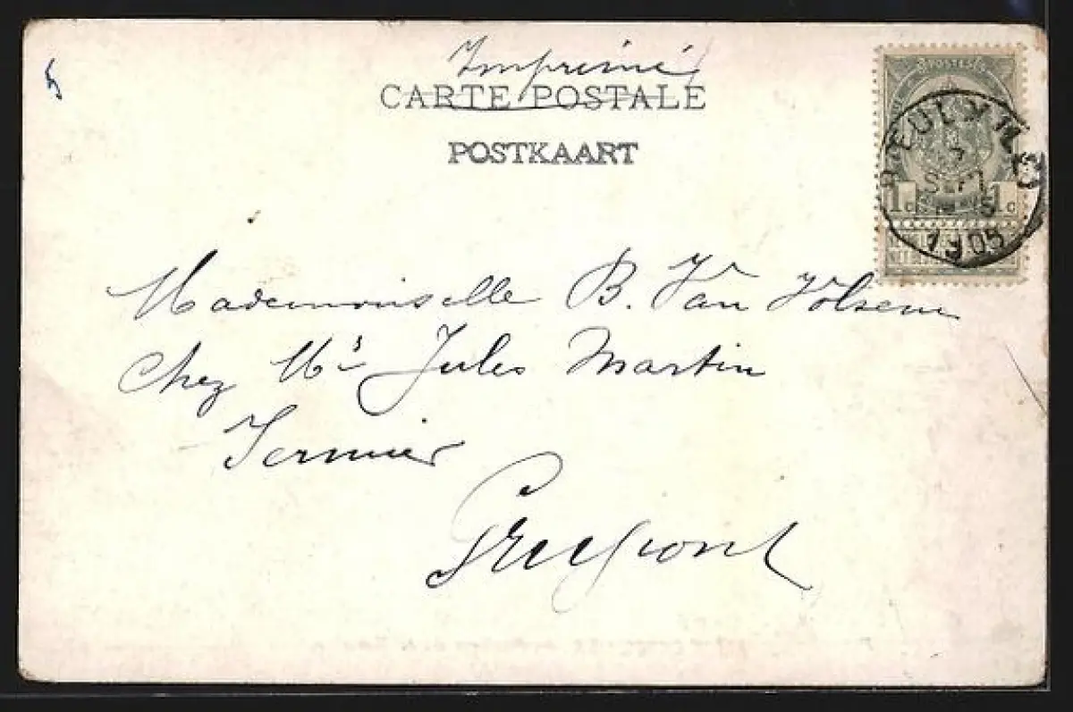 alte Ansichtskarte, gelaufen 1905, Ecken bestoßen, Abriebspur oben re., Stempelspur, guter Zustand