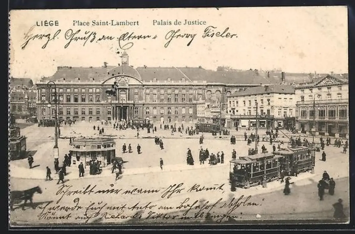 AK Liège, Place Saint-Lambert, Palais, Strassenbahn