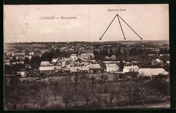 AK Liessies, Panorama mit Sanatorium im Hintergrund