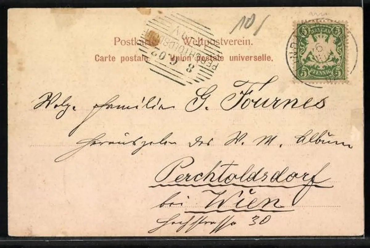 alte Ansichtskarte, gelaufen 1902, Eckknick li. oben, rückseitig Oberflächenschaden, guter Zustand