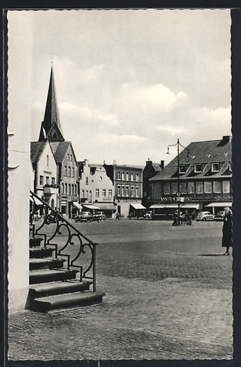 AK Lingen /Ems, Marktplatz, Kirche, Geschäftshäuser