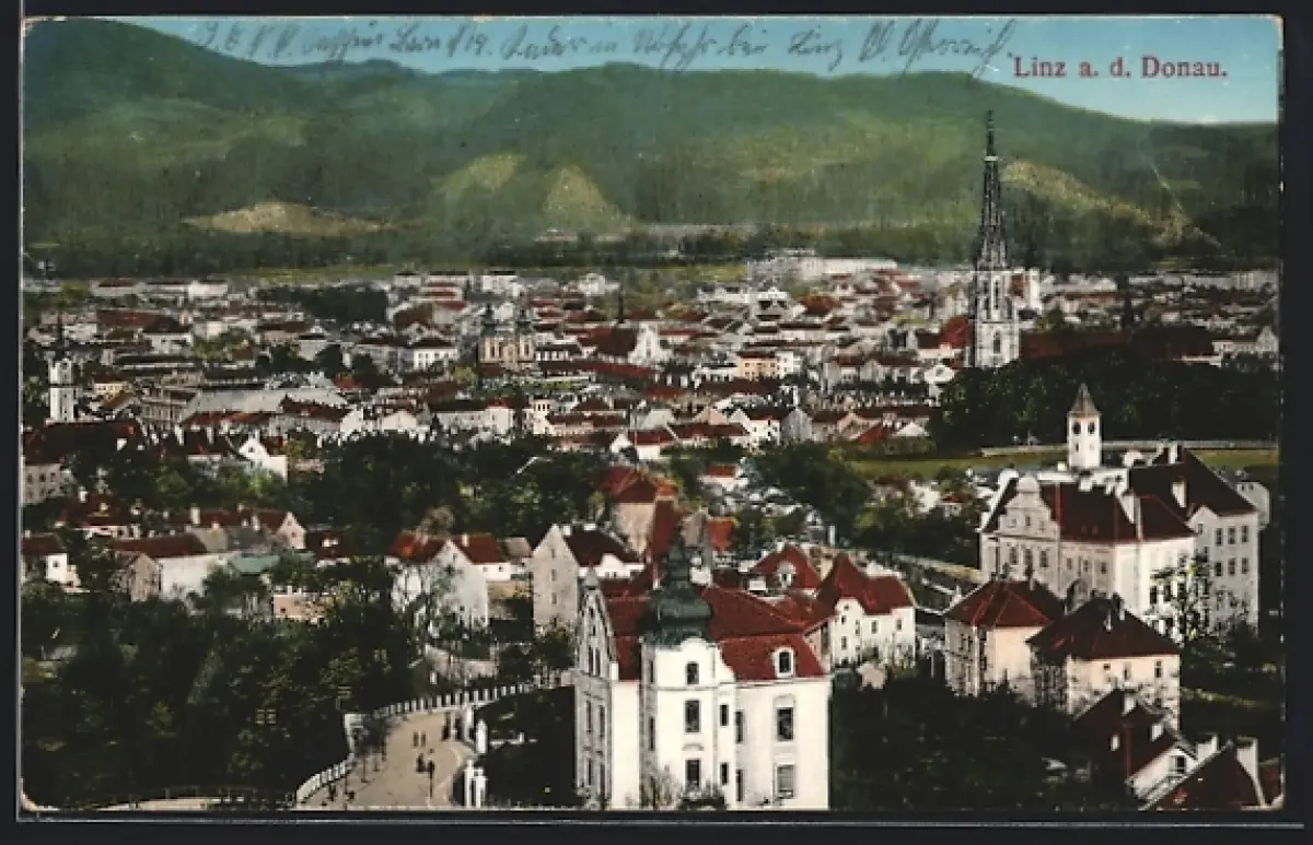 AK Linz a. d. Donau, Teilansicht mit Kirche
