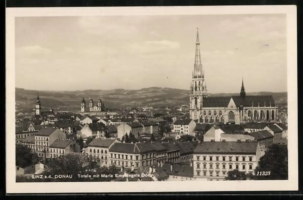 AK Linz a. d. Donau, Totale mit Maria Empfängnis Dom