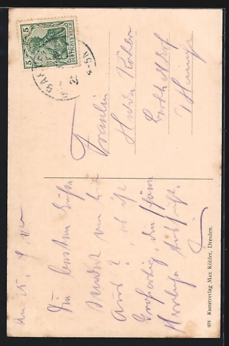 alte Ansichtskarte, gelaufen, Eckknicke oben rechts und unten links, guter Zustand