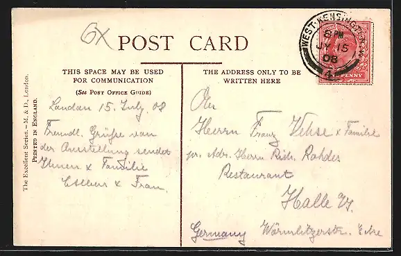 gelaufen 1908, Knick Ecke li. oben, guter Zustand