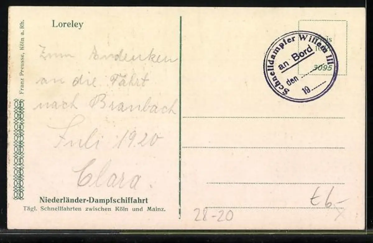 AK Loreleyfelsen mit Loreley bei Vollmond, Dampfer der Niederländer-Dampfschiffahrt