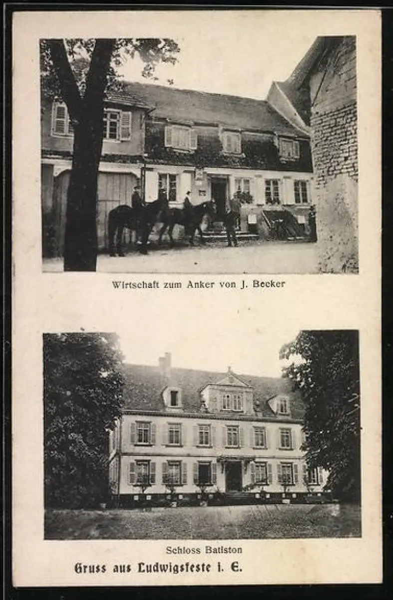 AK Ludwigsfeste i. E., Gasthaus zum Anker, Bes. J. Becker, Schloss Batiston
