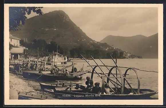 AK Lugano, Monte Bre, Boote am Strand, Dampfer an der Landungsstelle