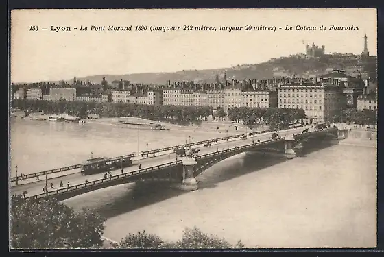 AK Lyon, Le Pont Morand 1890, Strassenbahn