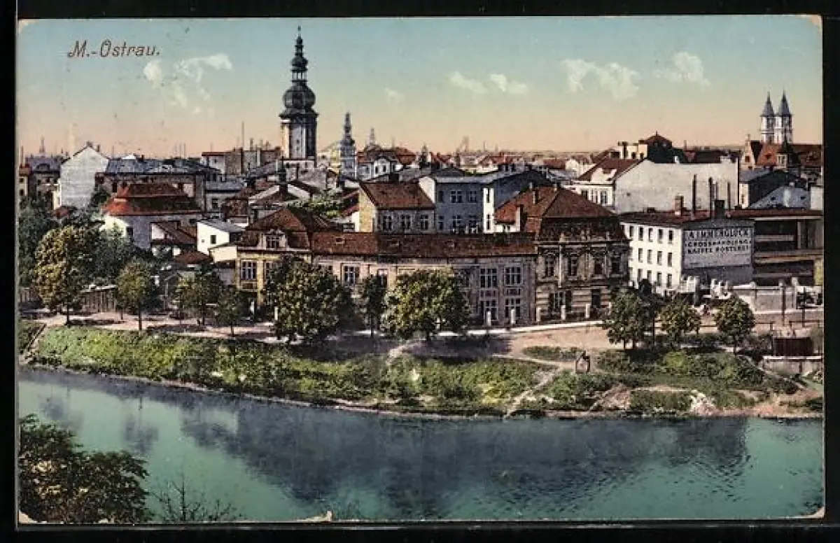 AK M.-Ostrau, Perspektive aus der Vogelschau im Sonnenschein