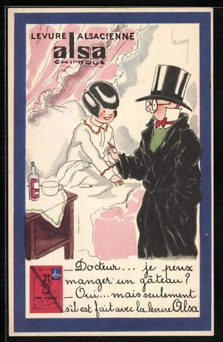 AK Mädchen befragt seinen Arzt, Reklame für Levure Alsacienne Alsa