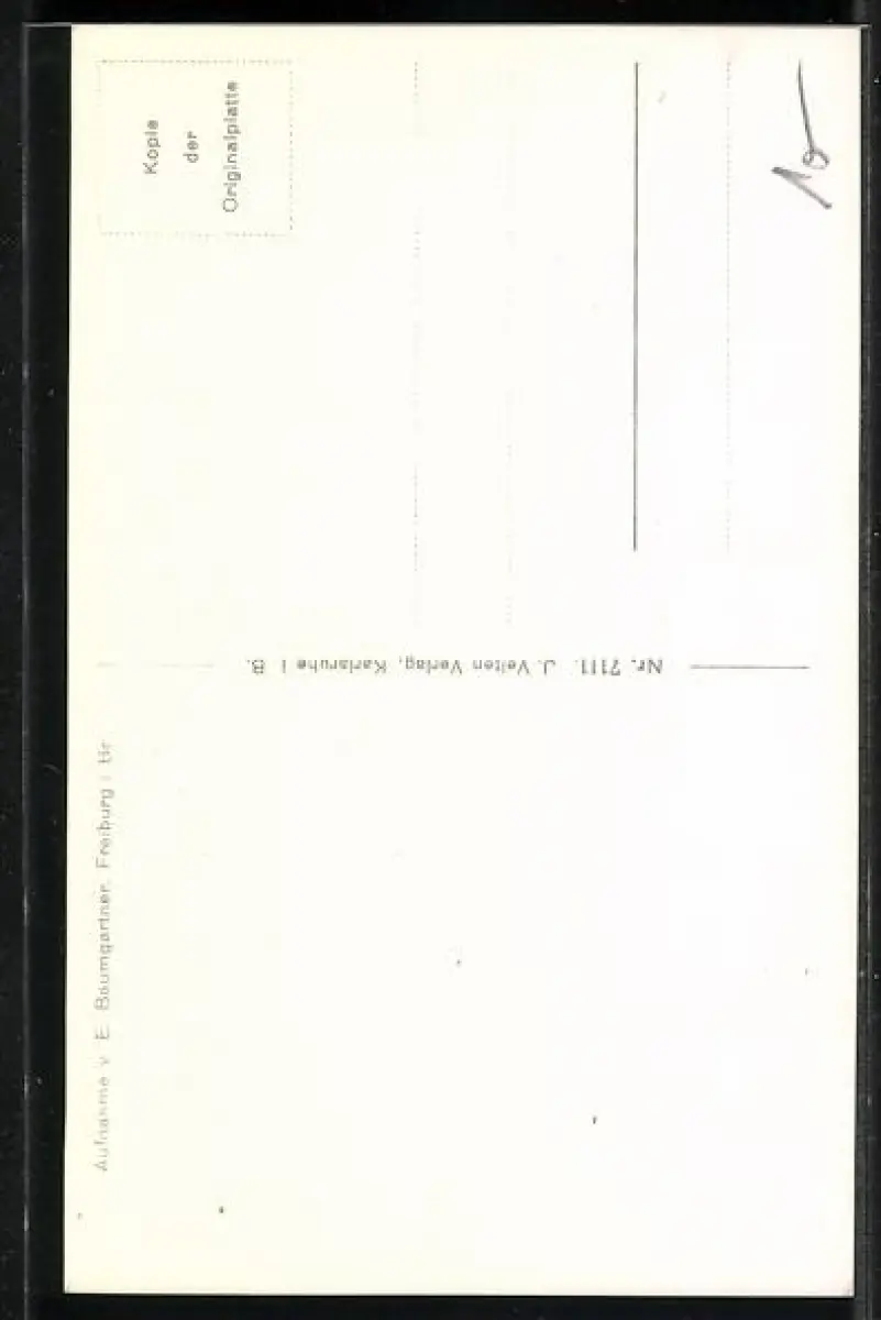 Personenbezogene Daten auf der Rückseite der Karte wurden durch blauen Textmarker unkenntlich gemacht. Die blauen Stellen sind auf die Vorderseite durchgeweicht und wirken sich negativ auf das Postkartenfoto aus