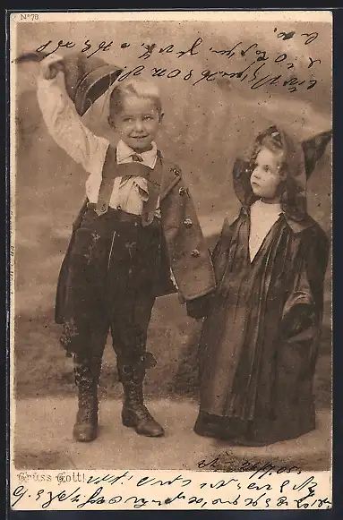 AK Mädchen und Junge in bayerischer Tracht
