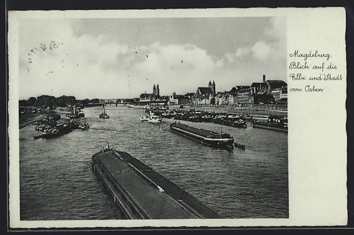 AK Magdeburg, Blick auf die Elbe und die Stadt von Osten